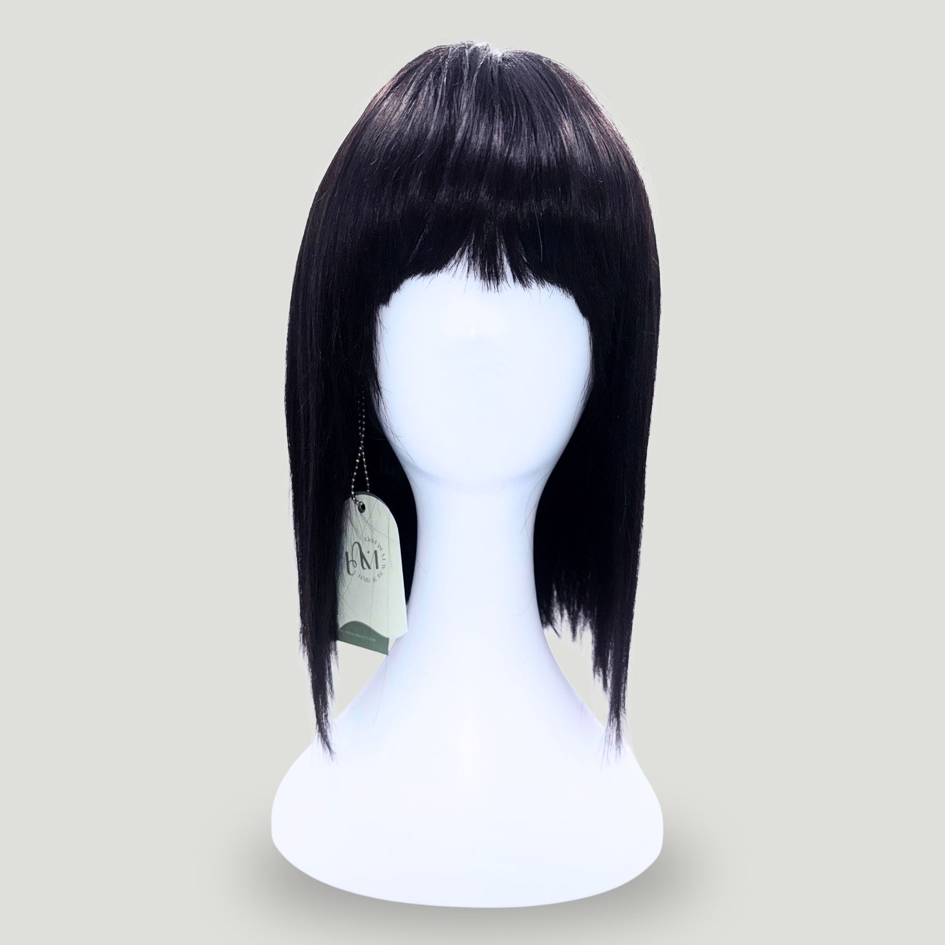 01- Human Hair Wig – Straight Black with Bangs, Medium Length