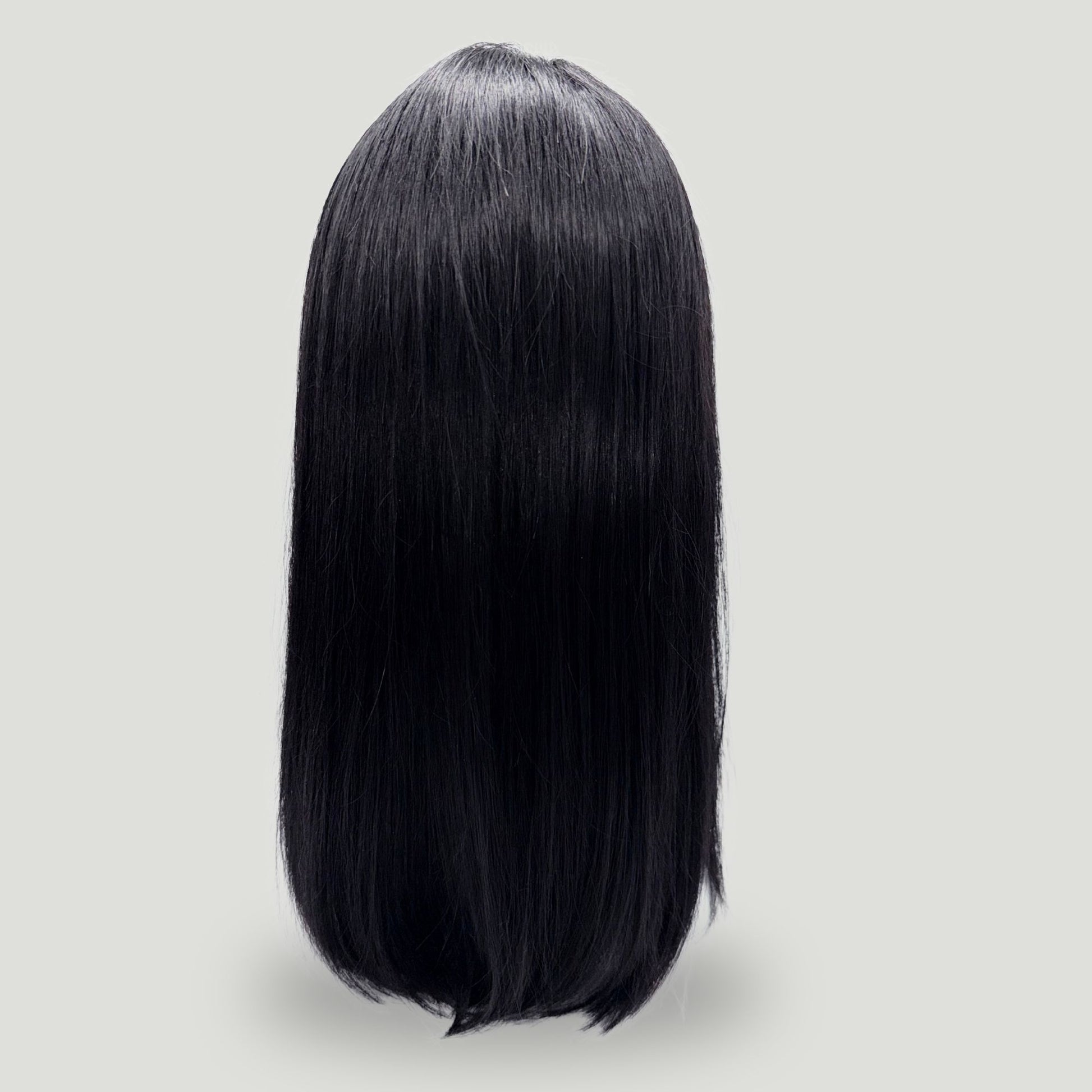 05- Natural Black 16-Inch Virgin Human Hair Long Straight Wig with Bangs – Premium Quality