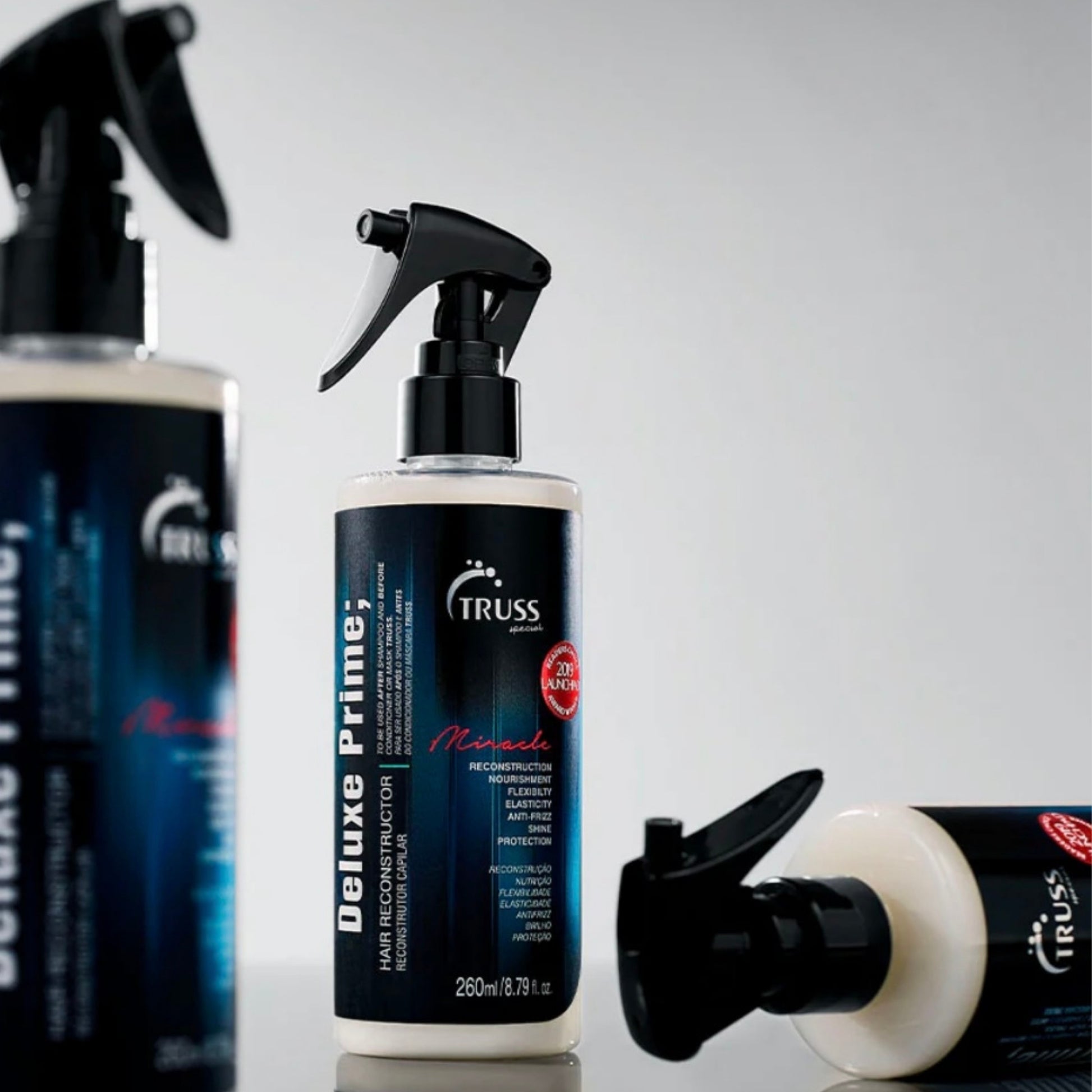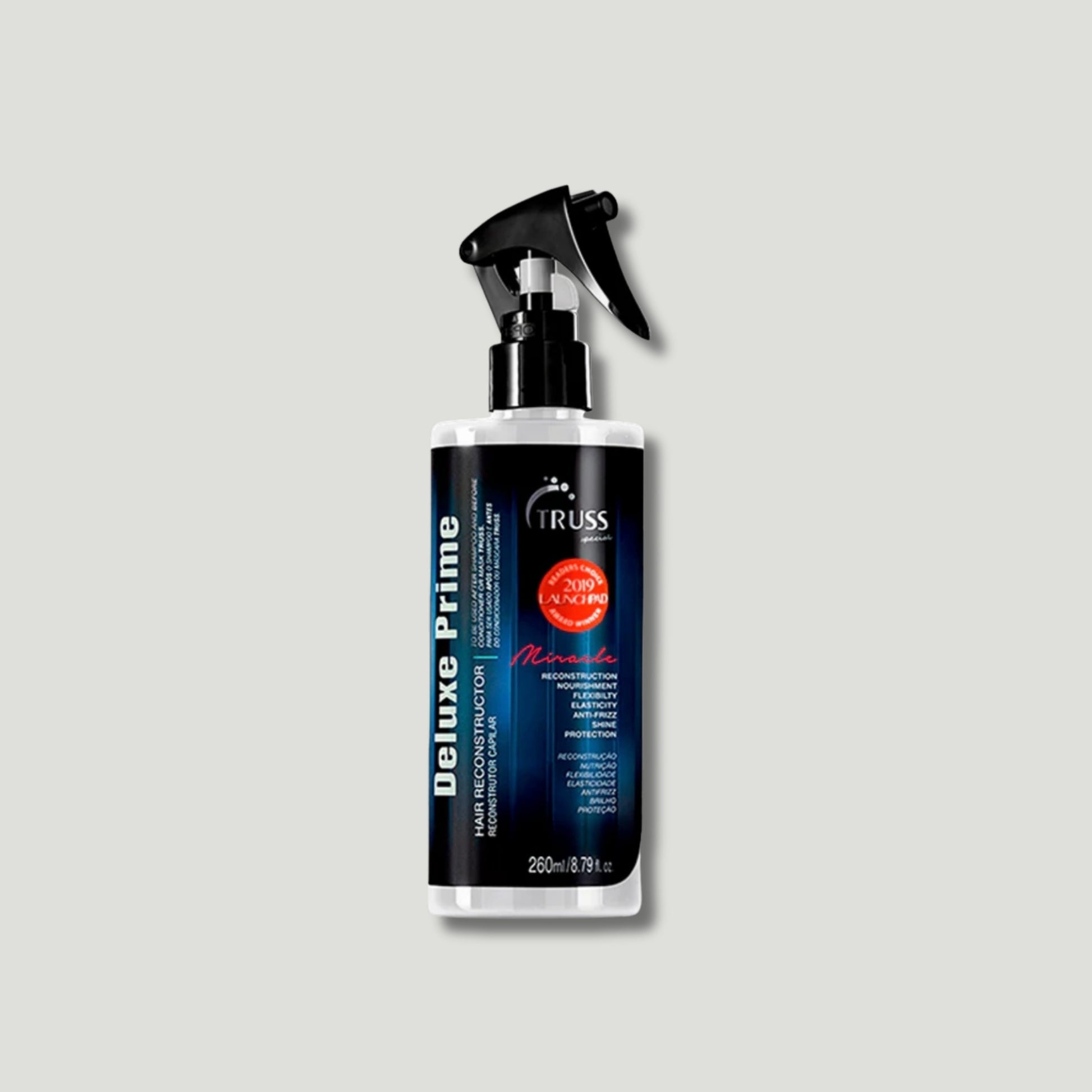 Truss Deluxe Prime Miracle is a professional leave-in reconstructor spray designed to restore strength, flexibility, and shine to damaged hair. Its advanced formula delivers deep nourishment and fiber reconstruction without weighing down the hair. Ideal for use before styling or as a daily leave-in treatment, it enhances softness, reduces breakage, and protects from external aggressors. Professional quality, made in Brazil.