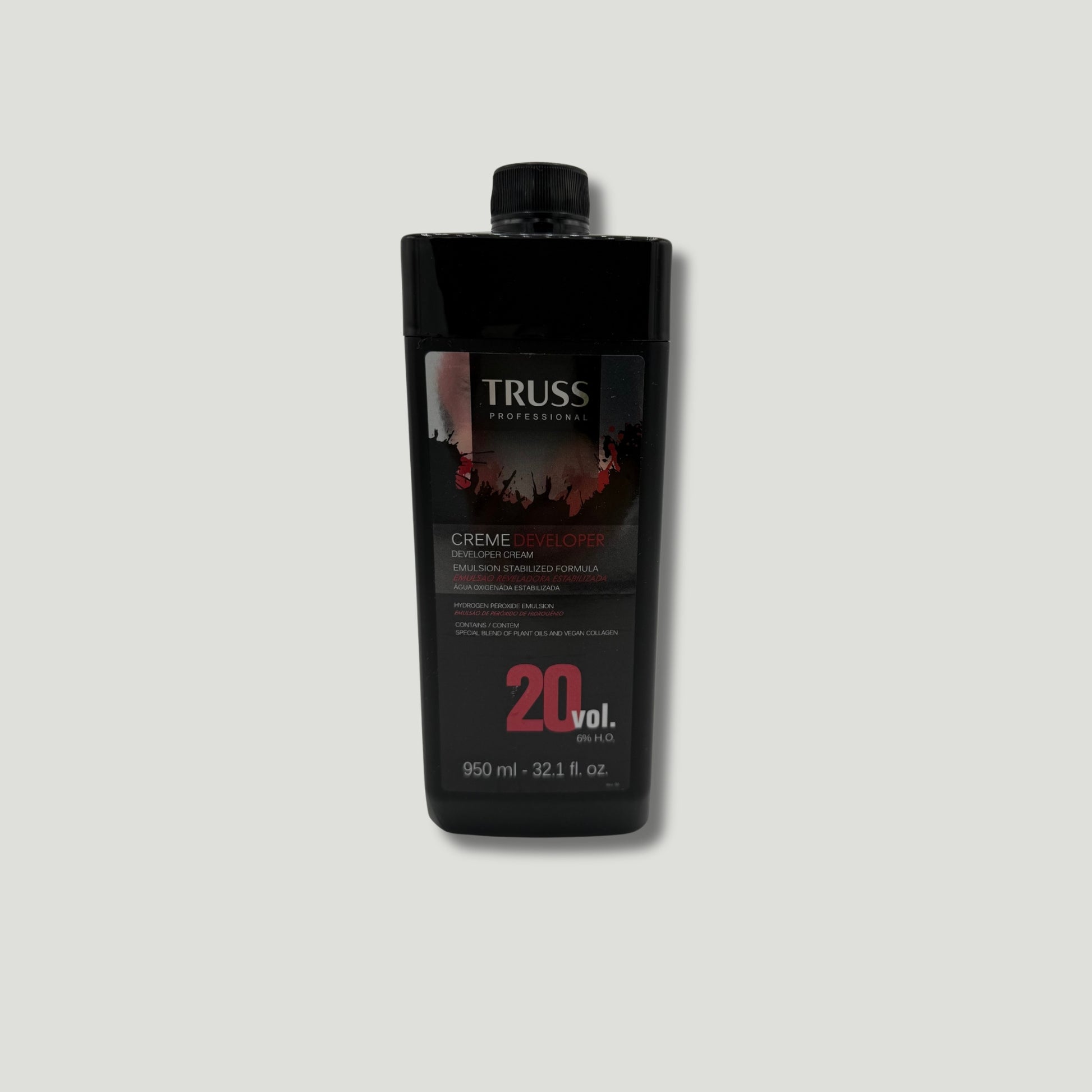 Truss Professional Creme Developer 20 Vol. is a stabilized oxidizing emulsion specially formulated to ensure optimal color development and consistency during hair coloring or lightening services. Enriched with gentle ingredients, it provides uniform results while preserving hair softness and shine. Recommended for use with Truss hair color and bleach. Professional quality, made in Brazil.