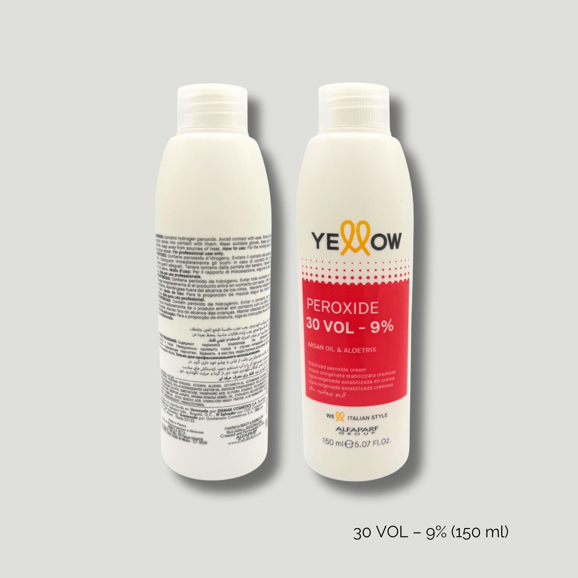 Yellow Peroxide Cream is a stabilized oxidizing emulsion enriched with Argan Oil and Aloetrix, specially designed to work with Yellow hair color and lightening products. Its creamy texture ensures smooth mixing and application, providing consistent results while protecting the hair’s structure. Available in 10, 20, and 30 volume strengths to suit different coloring needs. Professional quality, made in Italy.